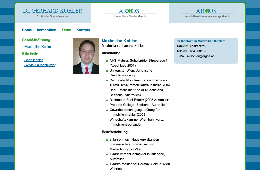 A TYPO3 website was created for the tax consultancy Dr. Gerhard Keller. A small extension was developed for displaying the team members.