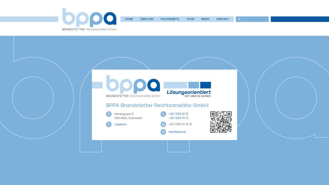 TYPO3 website for BPPA Brandstetter Rechtsanwälte GmbH, a renowned law firm in Vienna with over 90 years of experience.