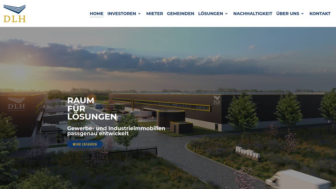 TYPO3 website for DLH Real Estate, a leading developer of well-designed and high-value logistics and industrial solutions.