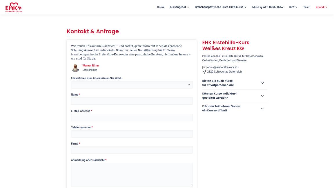 TYPO3 website for first aid courses for companies and organizations such as medical facilities, businesses or associations, providing sound knowledge and practical skills in compliance with legal standards.
