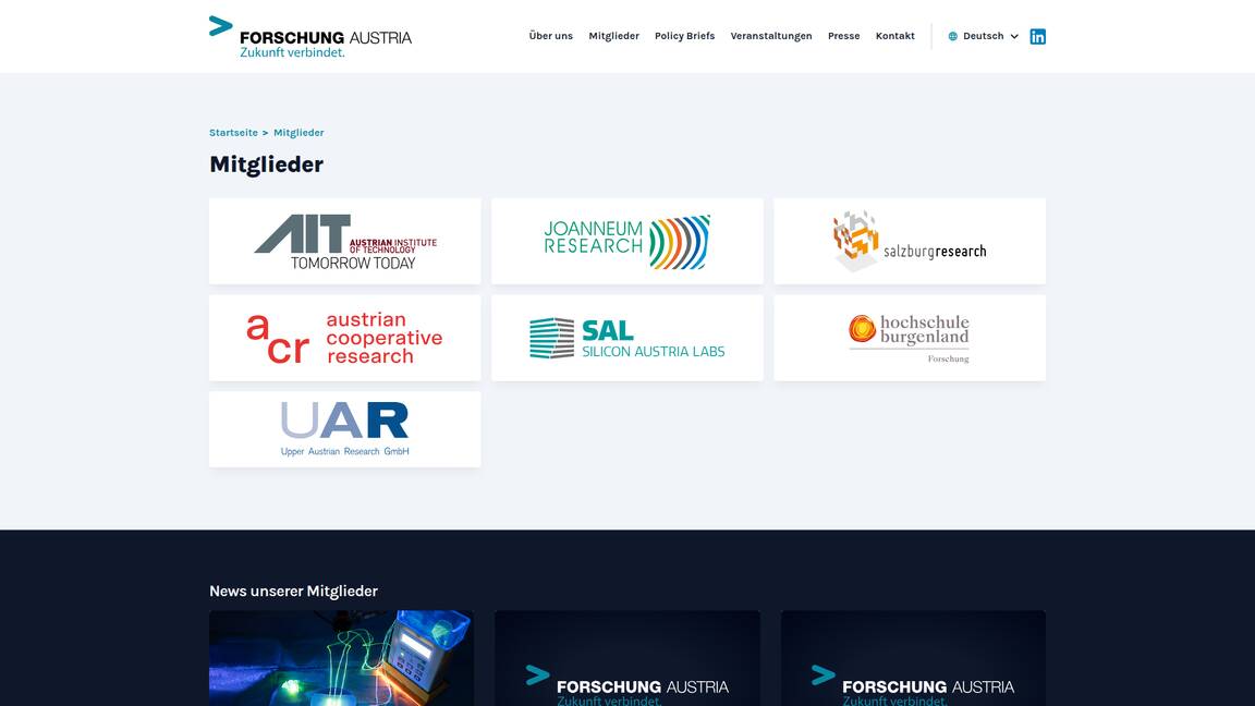 TYPO3 website for Forschung Austria, Austria's umbrella organization for non-university, application-oriented and industry-related research and technological development.