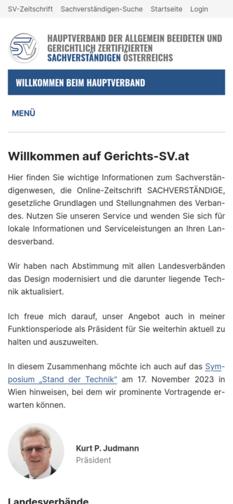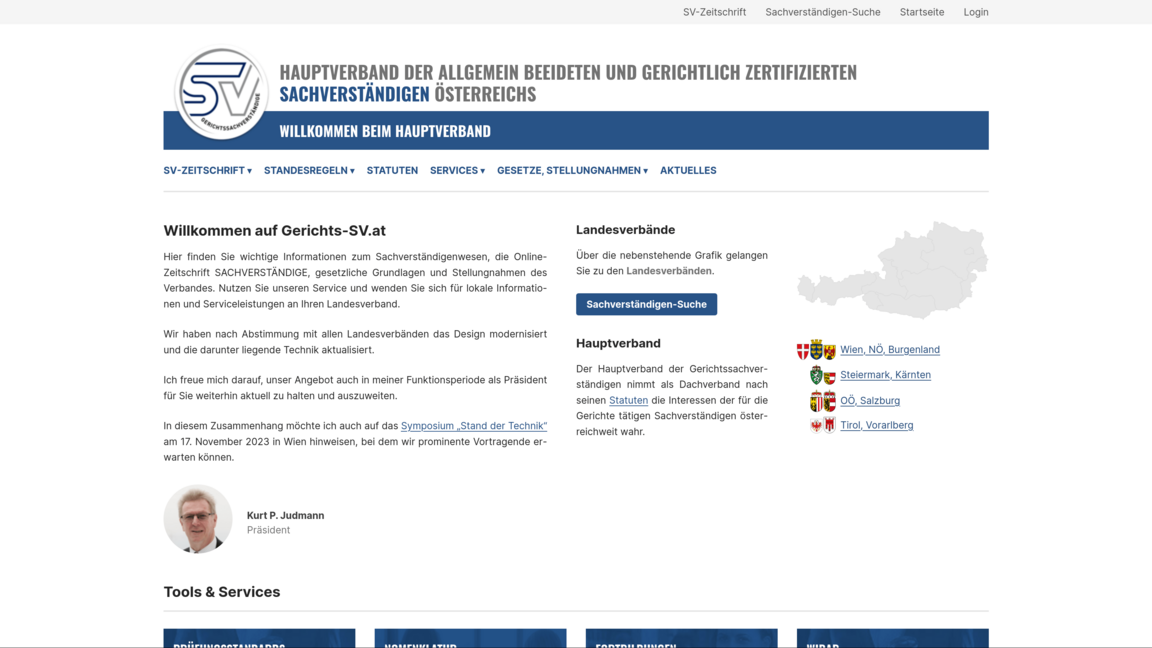 On the website of the generally sworn and court-certified experts of Austria, you will find important information about the expert witness system, the online journal SACHVERSTÄNDIGE, legal foundations and statements of the association.