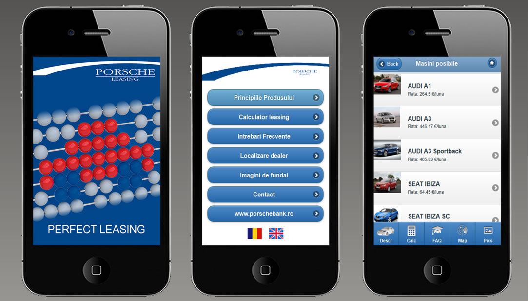 For the new leasing product of Porsche Finance Group Romania, rockit created and marketed an English and Romanian app.