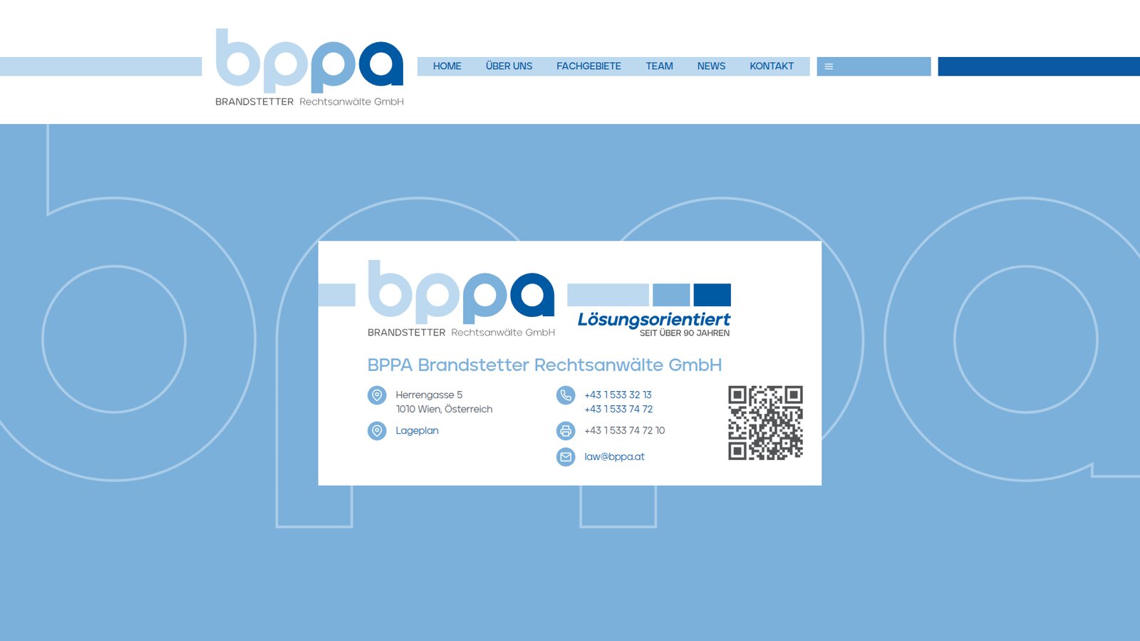 Wer seit über 90 Jahren in Wien Rechtsberatung leistet, hat sich ein Kapital erarbeitet, das keine Werbekampagne ersetzen kann: Vertrauen. BPPA Brandstetter Rechtsanwälte GmbH berät Unternehmen und Privatpersonen in vier Fachgebieten — Unternehmens- und Wirtschaftsrecht, Privatrecht, Immobilienrecht und internationales Recht — und versteht sich dabei als Partner:in, nicht nur als Dienstleister:in. Der Anspruch: lösungsorientiert, diskret, effizient. Eine Website, die dazu passt, darf nicht schreien. Sie soll schnell zeigen, wer man ist, welche Themen man versteht, und wie der erste Schritt zur Kontaktaufnahme aussieht — ohne Umwege.