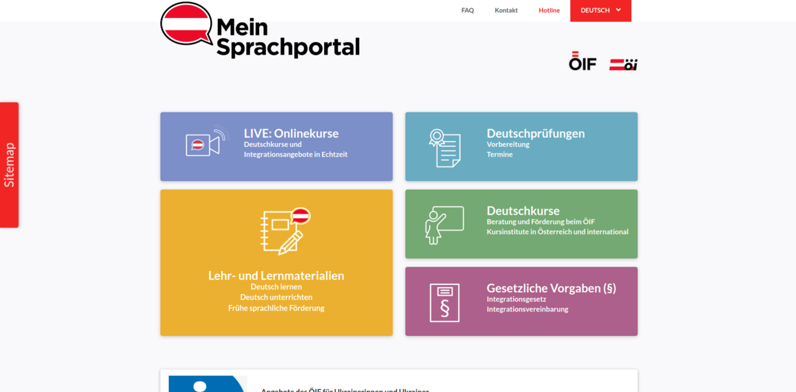 Support für das Sprachportal des österreichischen Integrationsfonds, die österreichweit größte Online-Plattform für Deutschlerner/innen und Deutschlehrende.